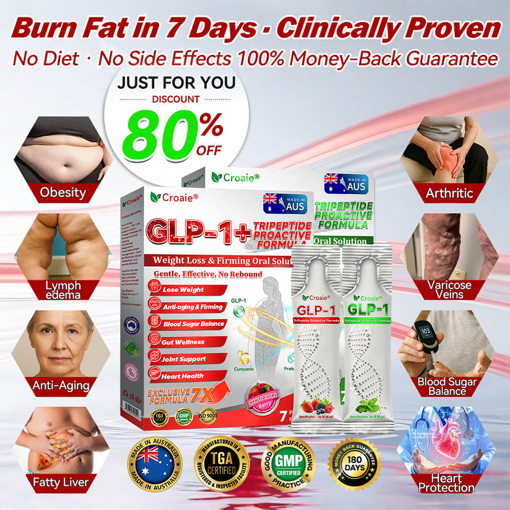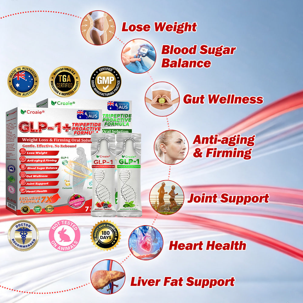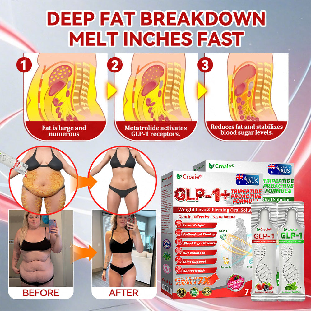 CroaieยฎGLP-1+Collagen Peptides Weight Loss&Firming Oral Solutionย Developed by an international team of metabolic and endocrinology experts, the GLP-1 + Collagen Peptides Oral Solution represents a groundbreaking synergy in weight management and skin regeneration.GLP-1 technology precisely targets the bodyโs metabolic center to regulate appetite, accelerate fat breakdown, and restore energy balance. Meanwhile, Collagen Peptides work deep within the dermis to repair structural loss caused by fat reduction, rebuilding the skinโs support network and visibly improving firmness and elasticity.Clinical studies demonstrate that this dual-action formula delivers measurable resultsโreducing body fat while enhancing skin tightness within a short period of use. It offers a scientifically validated solution for sustainable health, firmness, and long-lasting vitality.